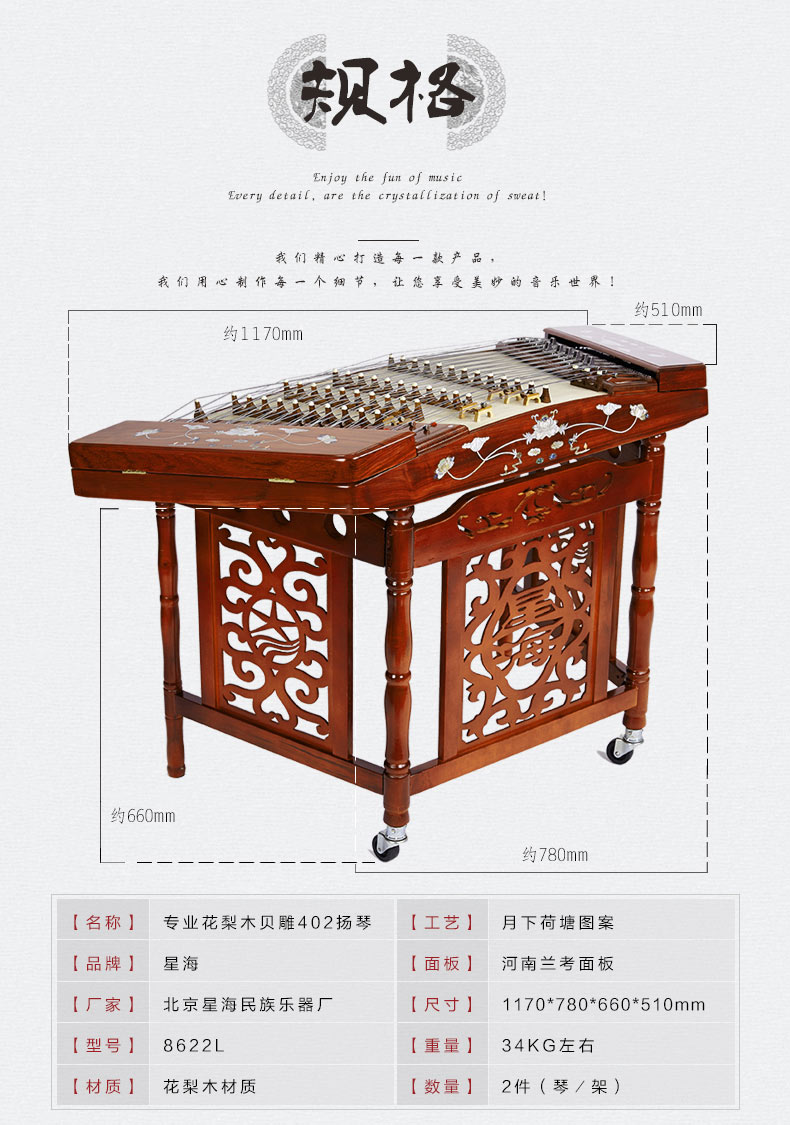 星海專業(yè)花梨木雕龍402揚(yáng)琴